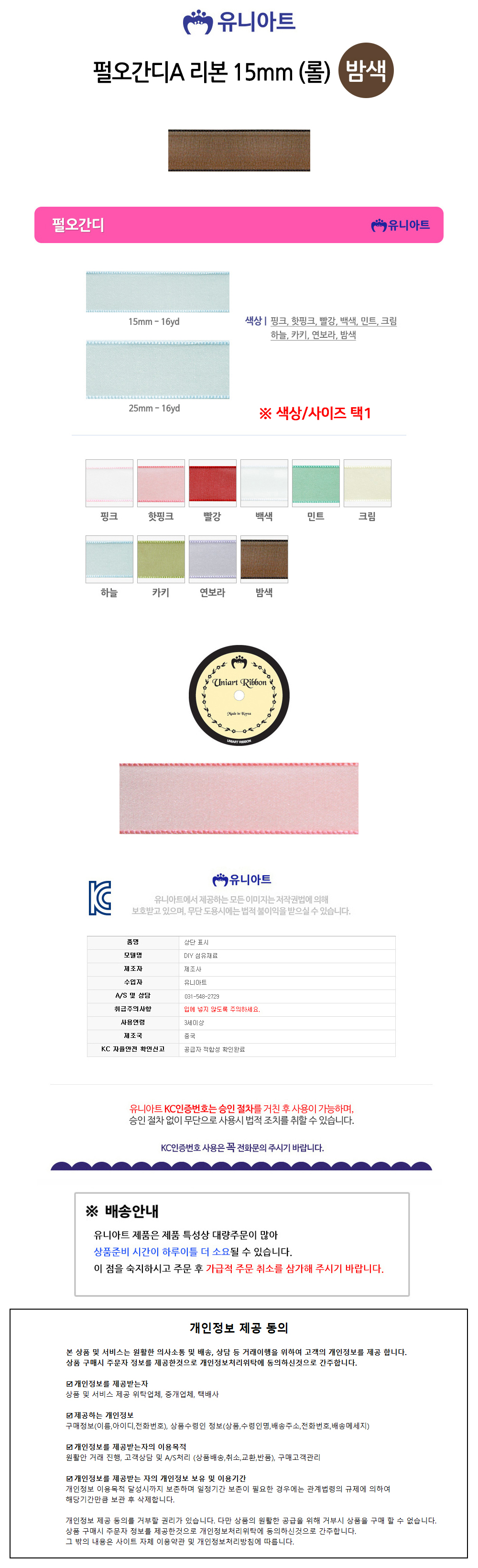 유니아트(리본) 6000 펄오간디A 리본 15mm (밤색) (롤)