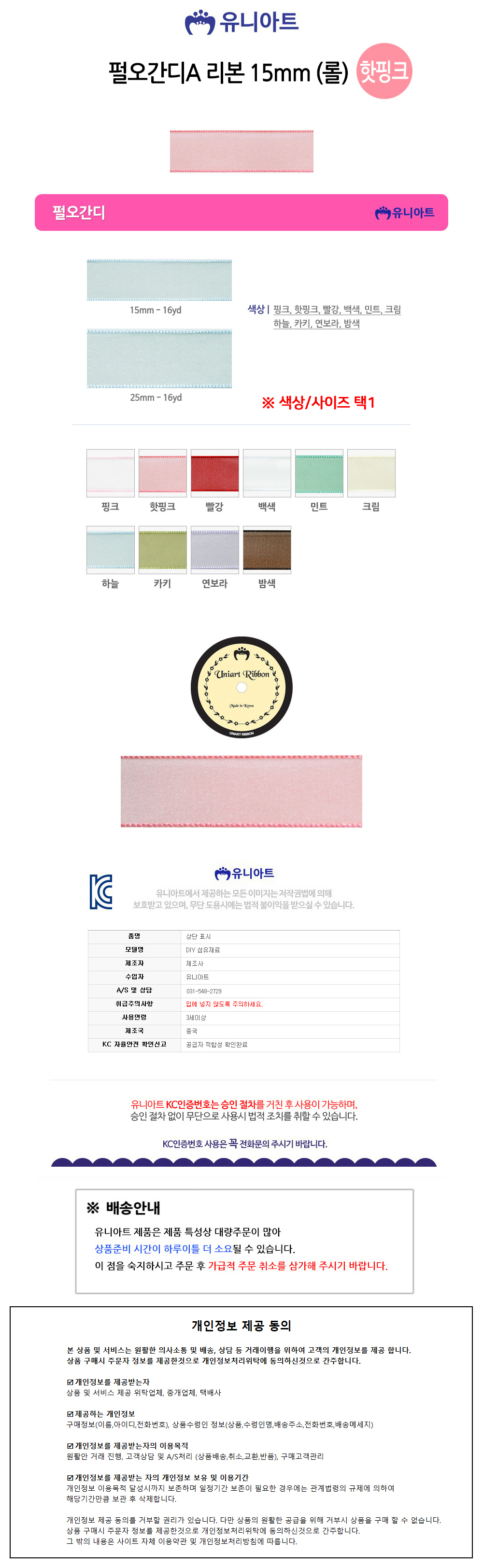 유니아트(리본) 6000 펄오간디A 리본 15mm (핫핑크) (롤)