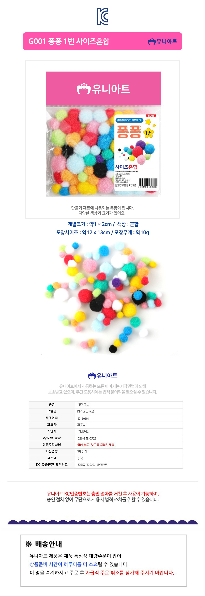 유니아트 2000 퐁퐁 1번 사이즈 혼합