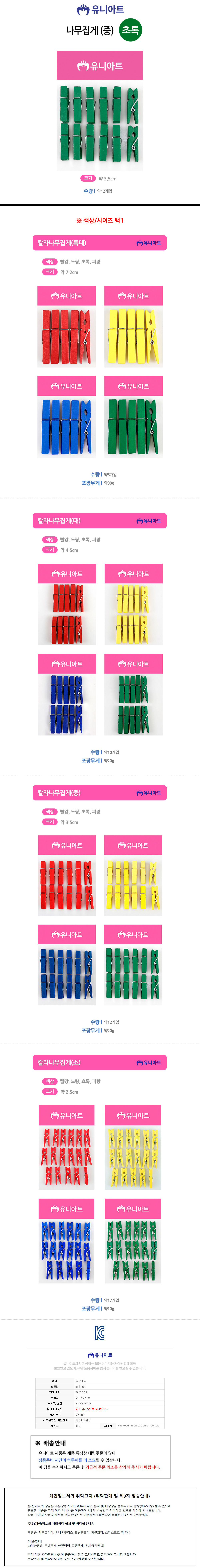 유니아트 1200 나무집게 중 초록