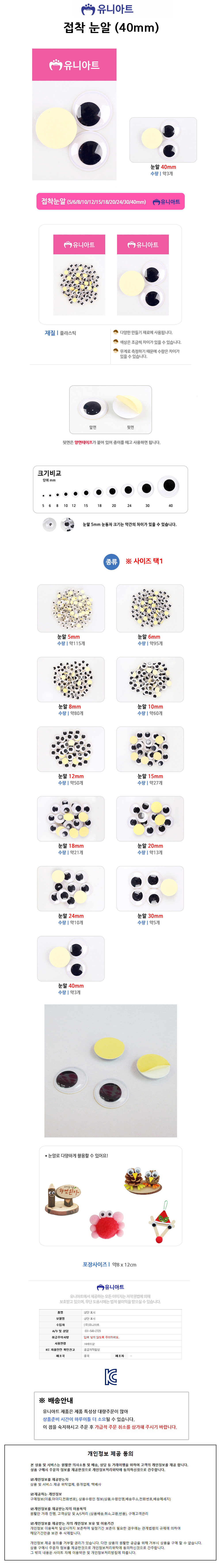 유니아트 1000 접착 눈알 (40mm)