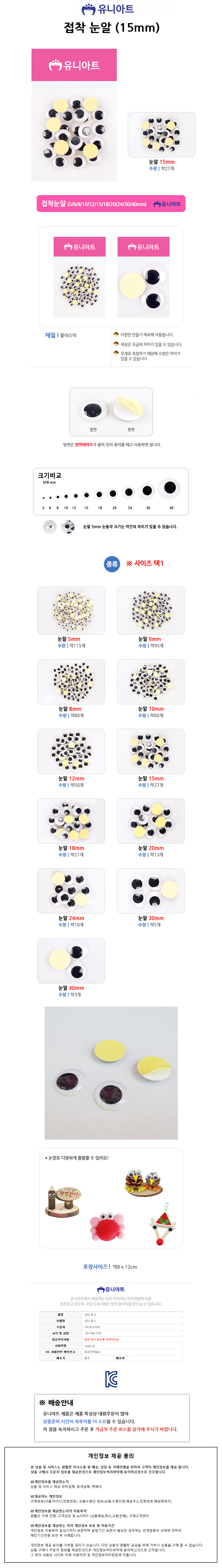 유니아트 1000 접착 눈알 (15mm)