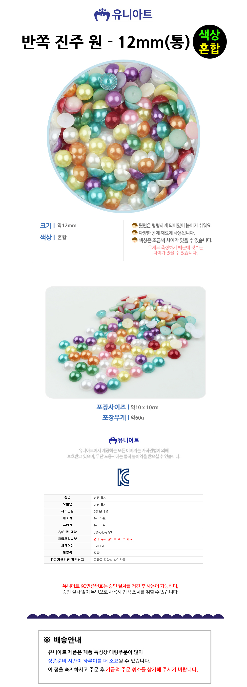 유니아트 5000 반쪽 진주 색상혼합 12mm 통