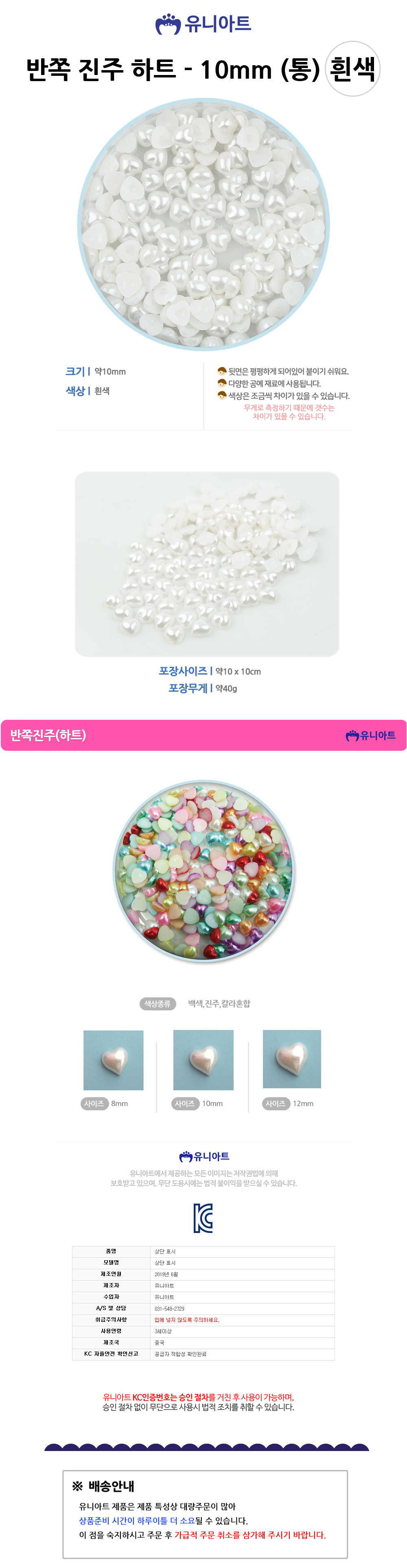 유니아트 5000 반쪽 진주 하트 흰색 10mm 통
