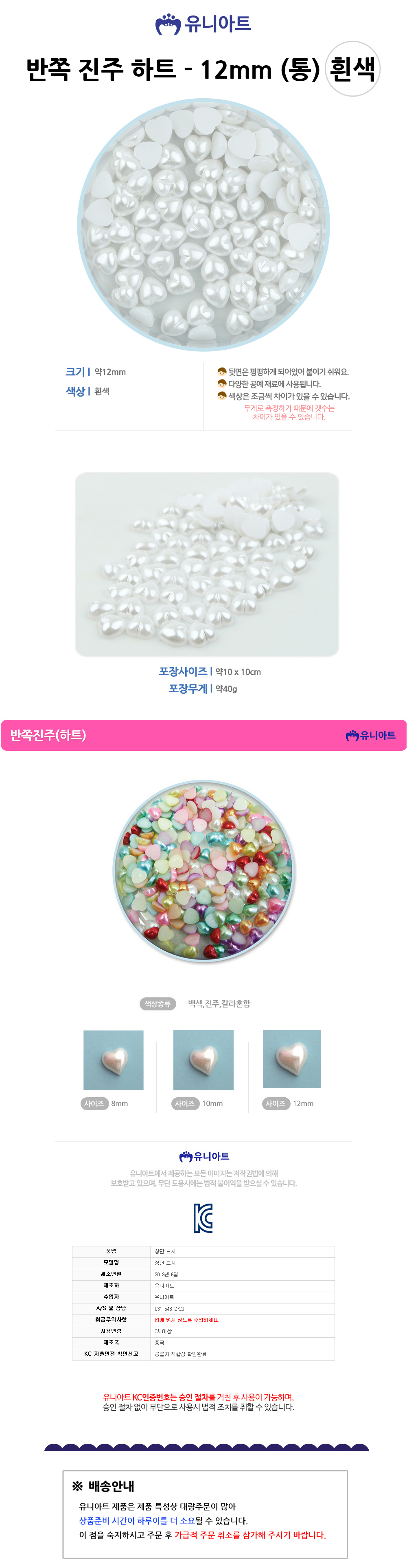 유니아트 5000 반쪽 진주 하트 흰색 12mm 통