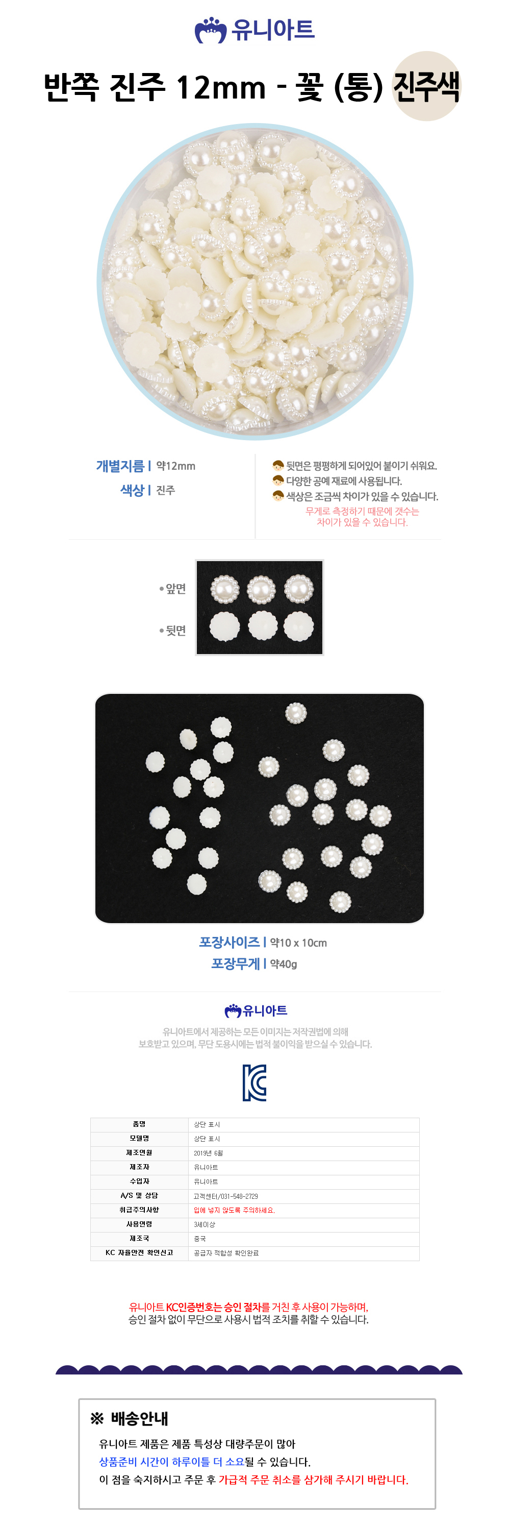 유니아트 5000 반쪽 진주 12mm 꽃 진주색 통