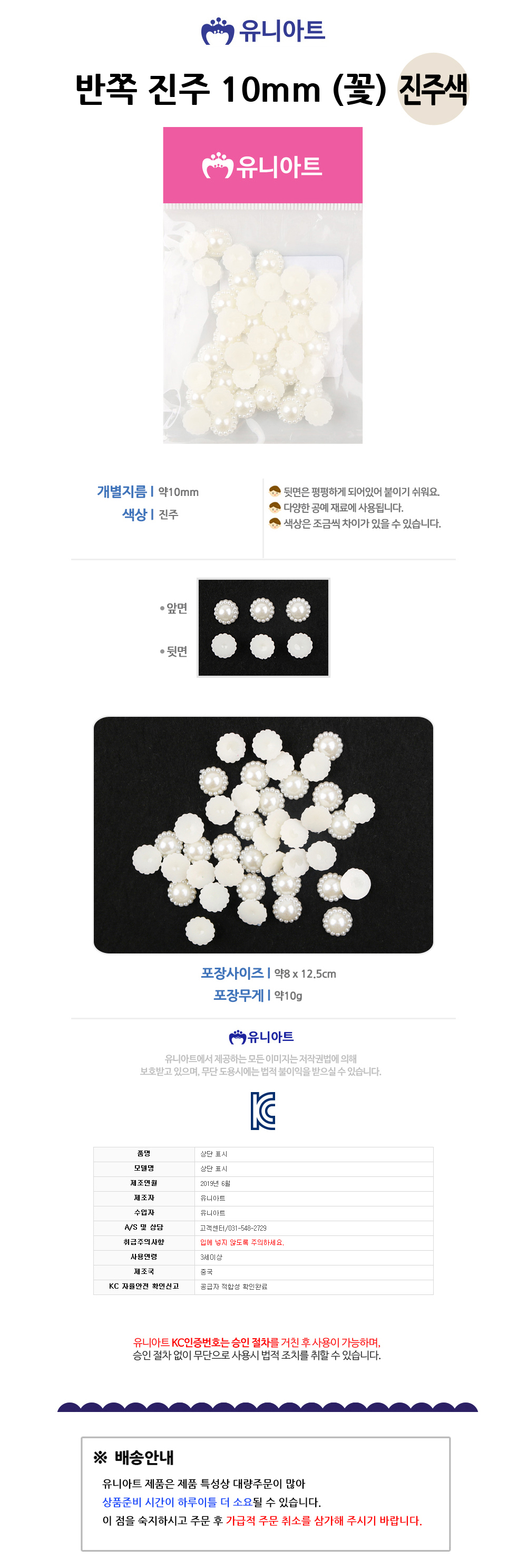 유니아트 1000 반쪽 진주 10mm 꽃 진주색