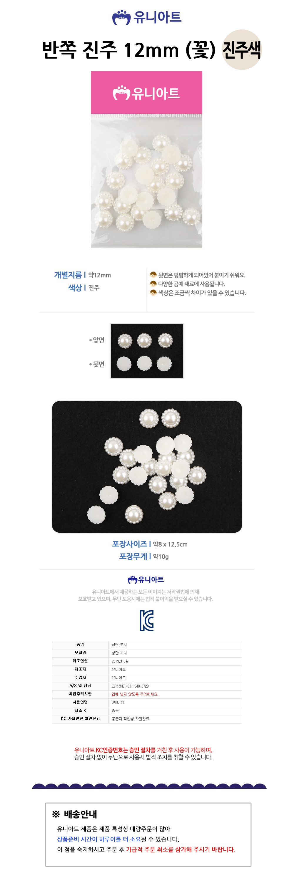 유니아트 1000 반쪽 진주 12mm 꽃 진주색