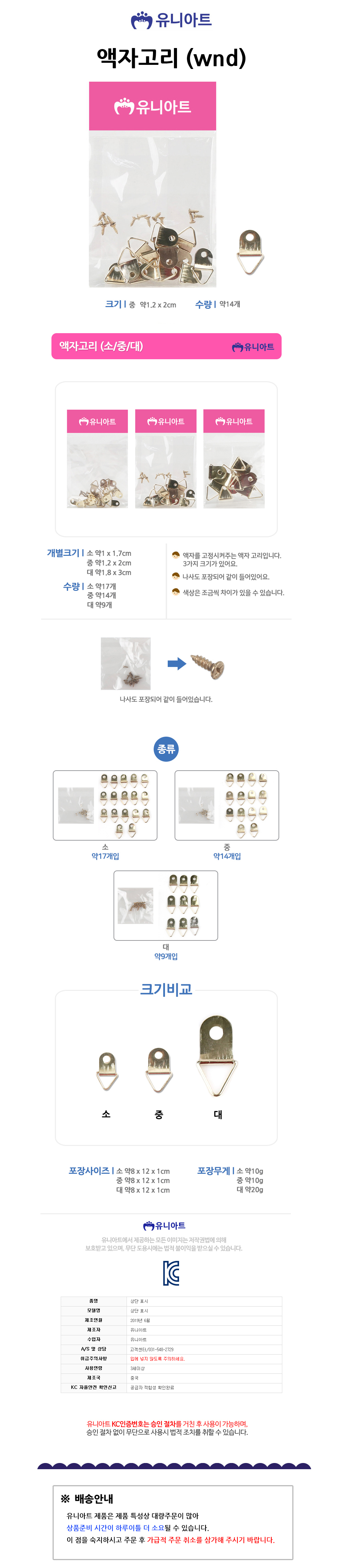 유니아트 1000 액자고리. 나사 중