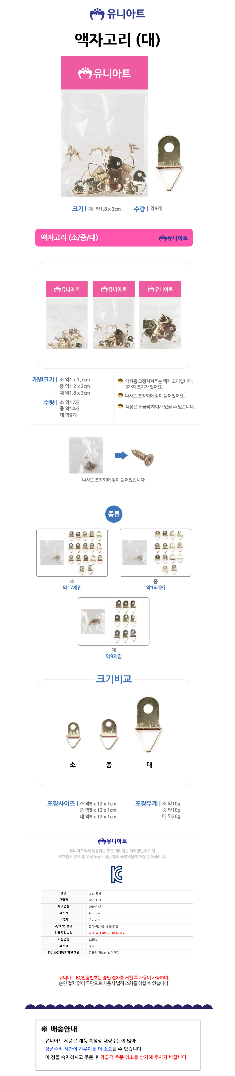 유니아트 1000 액자고리. 나사 대