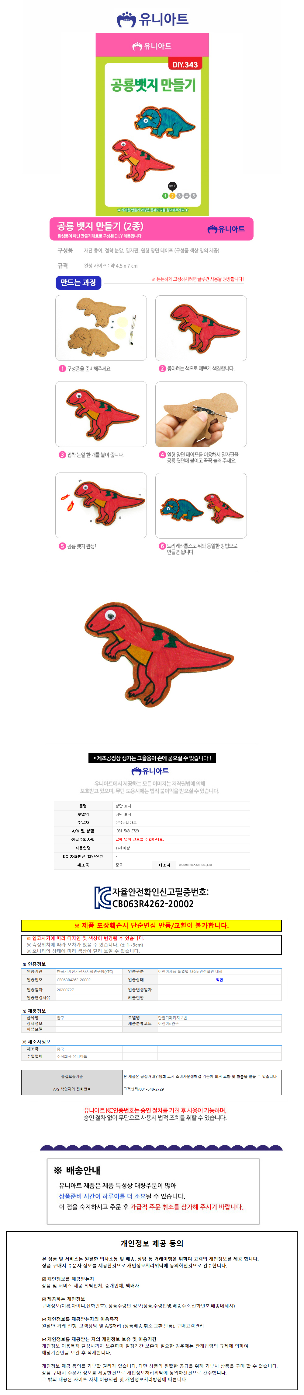 유니아트 (DIY.343) 뱃지 만들기 (종이 공룡)