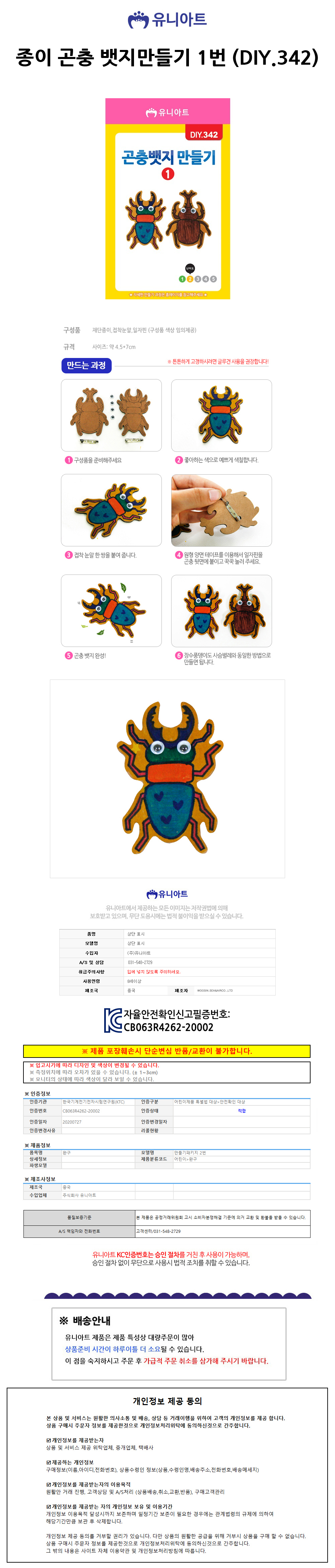 유니아트 (DIY.342) 뱃지 만들기 (종이 곤충 1번)