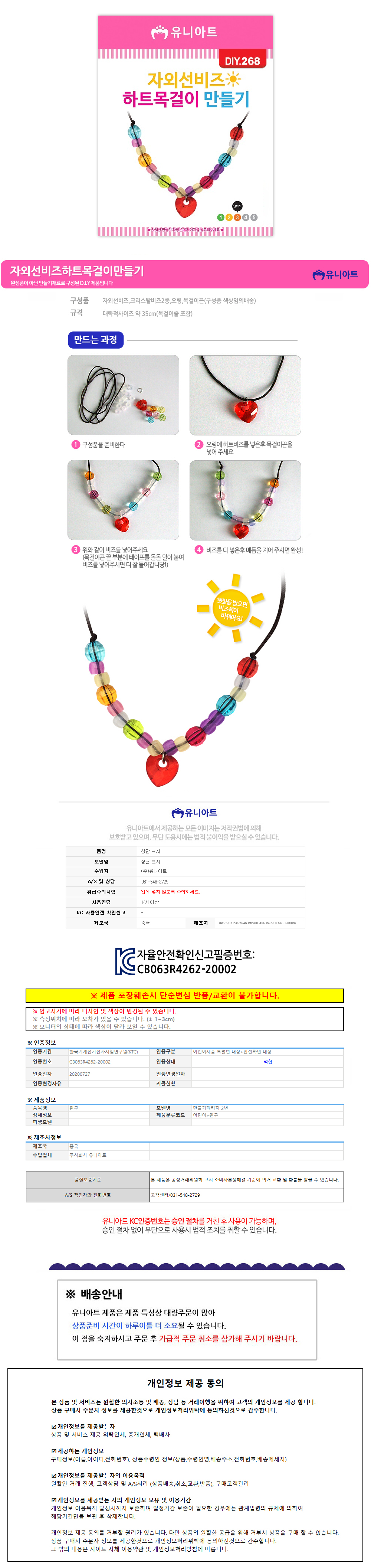 유니아트 (DIY.268) 목걸이 만들기 자외선 비즈 (하트)