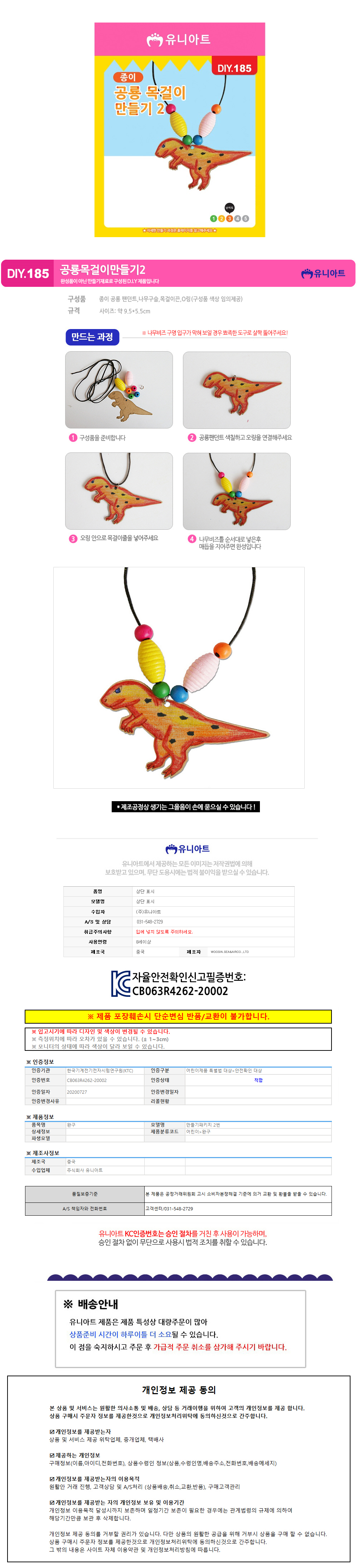 유니아트 (DIY.186) 목걸이 만들기 (종이 공룡 no.2)