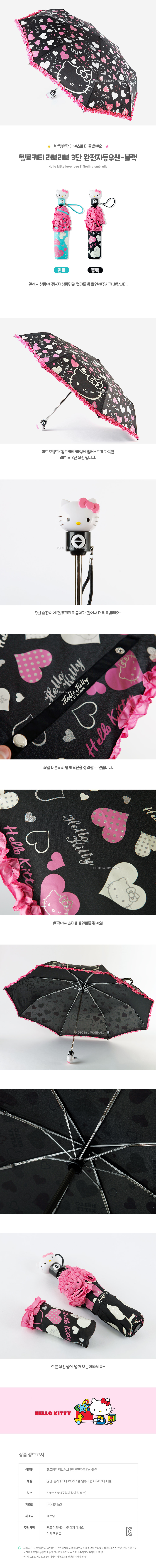 헬로키티 러브러브 3단 완전자동우산-블랙