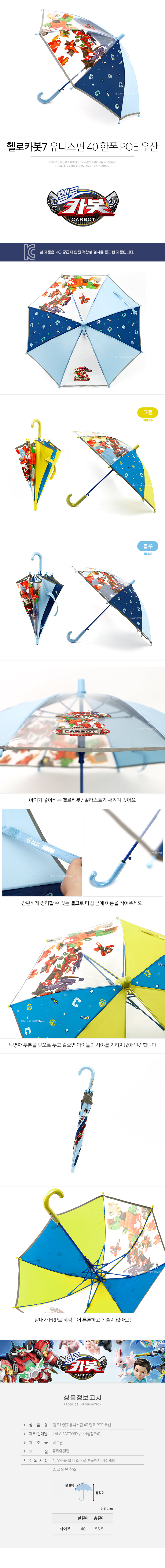 헬로카봇7 유니스핀 40 한폭 POE 우산-블루