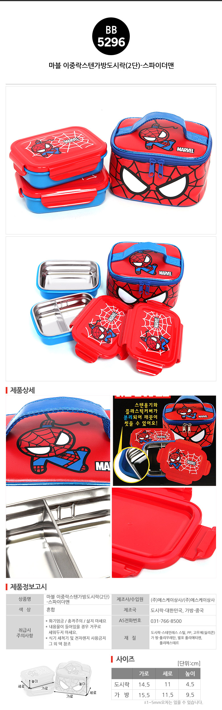 품명 및 모델명 마블 이중락스텐가방도시락(2단) 스파이더맨