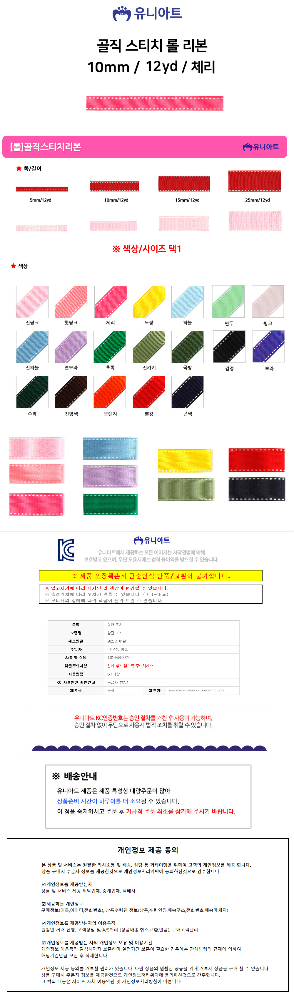 유니아트 리본 골직 스티치 롤 폭 10mm 체리