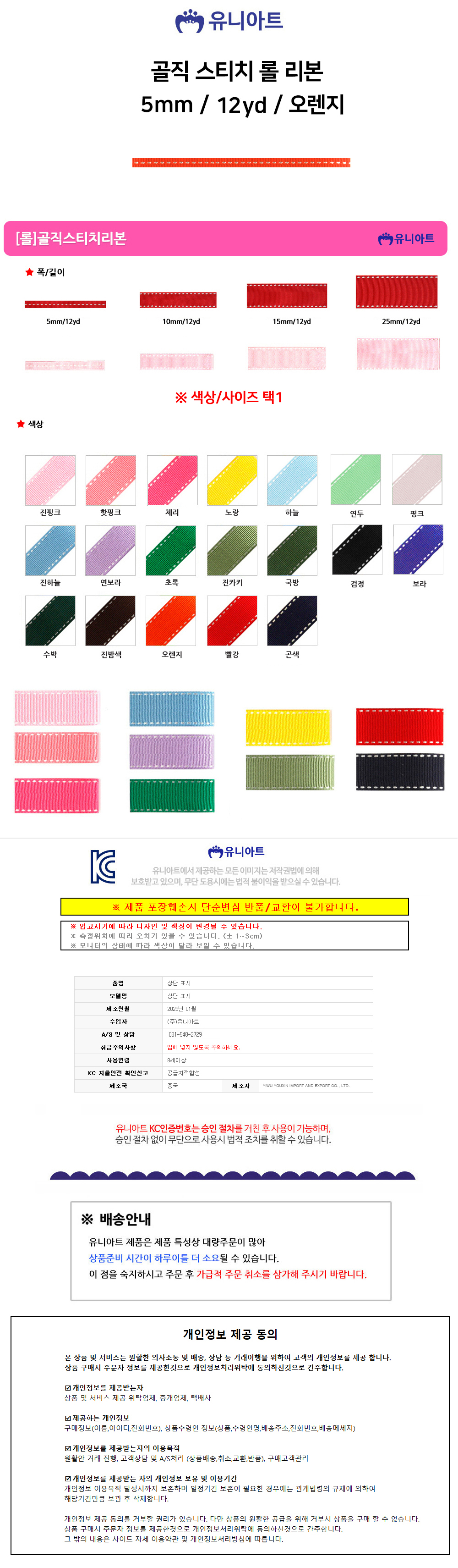 유니아트 리본 골직 스티치 롤 폭 5mm 오렌지