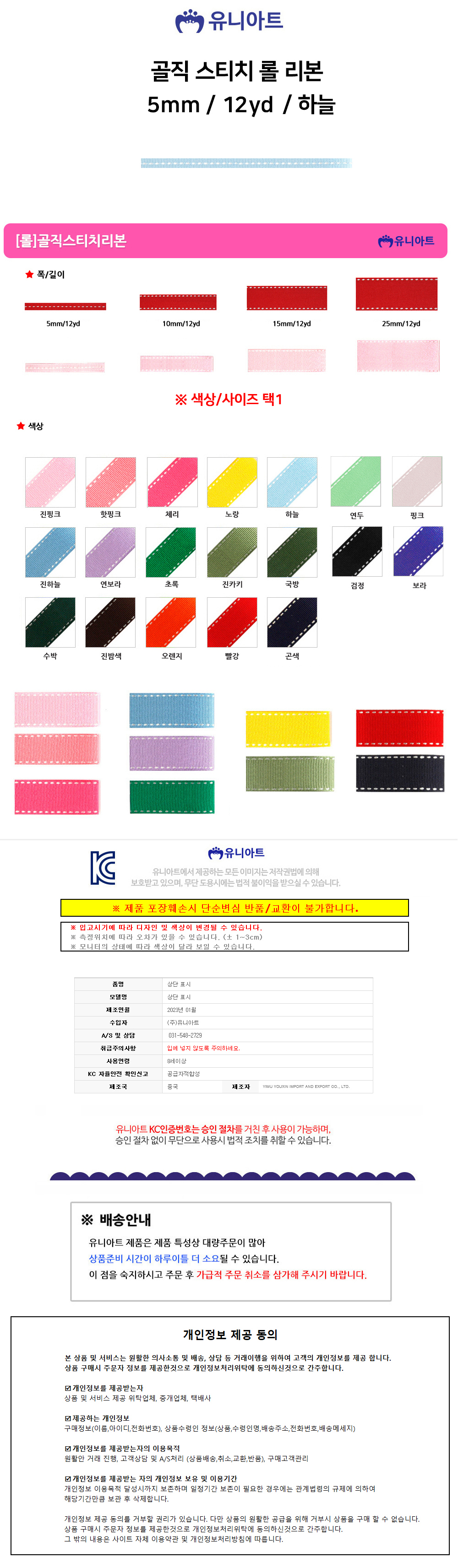 유니아트 리본 골직 스티치 롤 폭 5mm 하늘