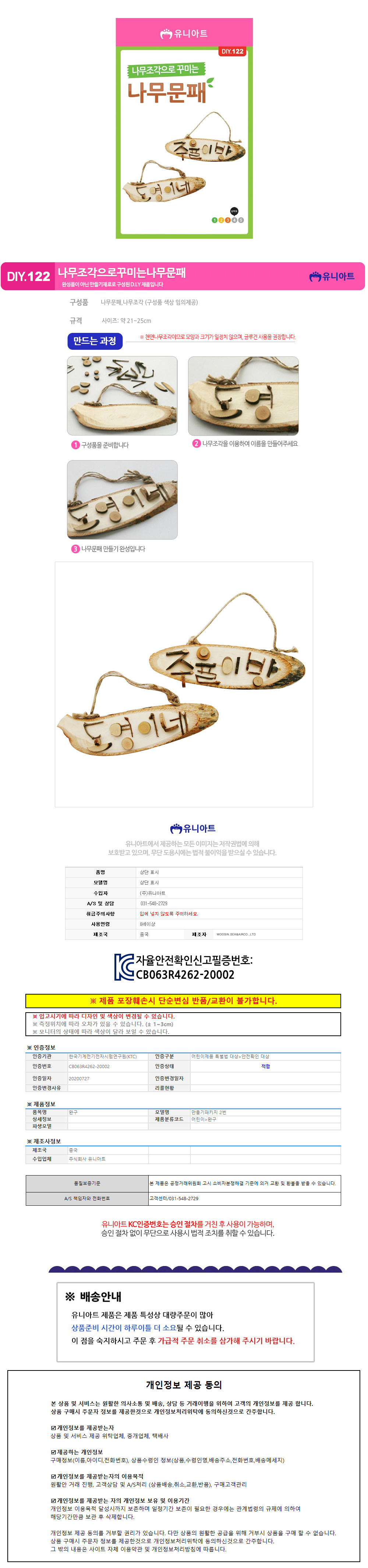 유니아트 (DIY.122) 나무조각으로 꾸미는 나무 문패