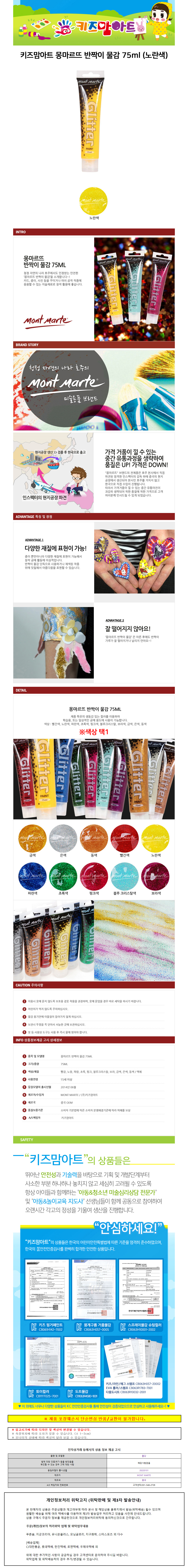 키즈맘아트 미술놀이 몽마르뜨 반짝이 물감 75ml 노란색