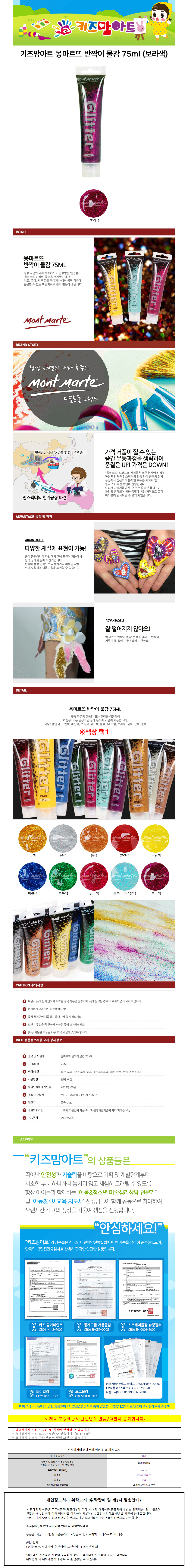 키즈맘아트 미술놀이 몽마르뜨 반짝이 물감 75ml 보라색