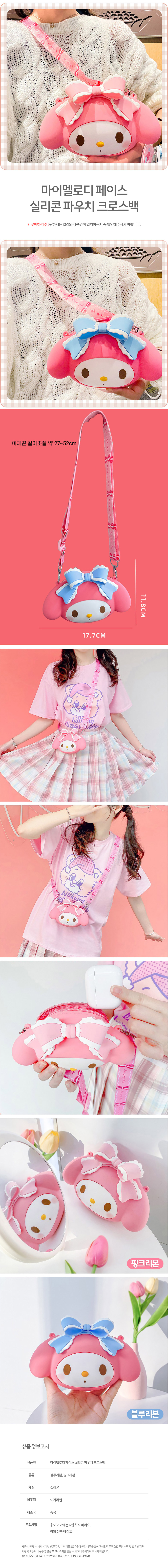 마이멜로디 페이스 실리콘 파우치 크로스백-블루리본