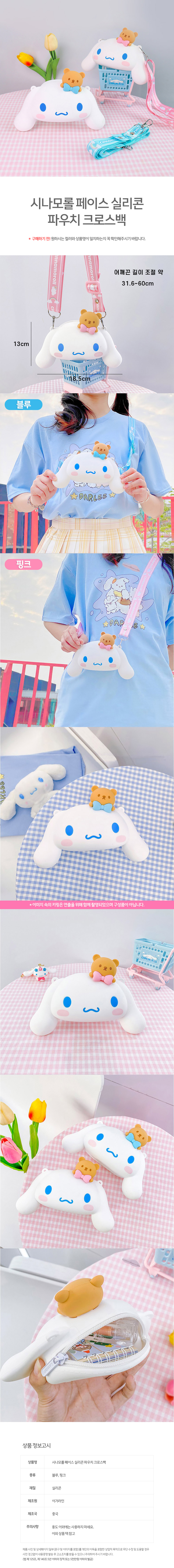 시나모롤 페이스 실리콘 파우치 크로스백-핑크