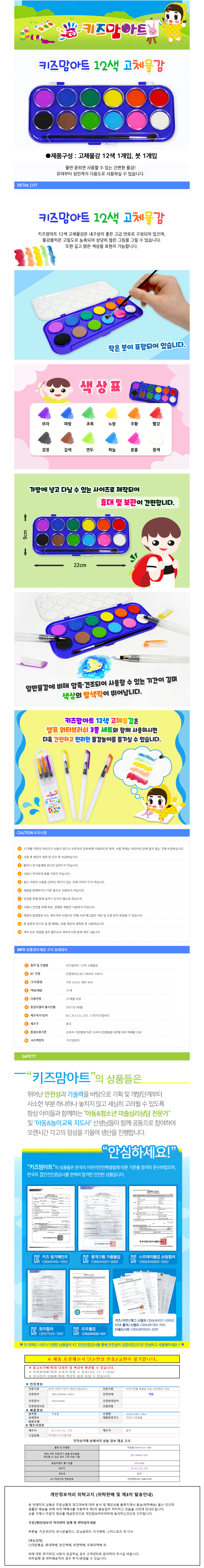 키즈맘아트 미술놀이 고체물감 12색