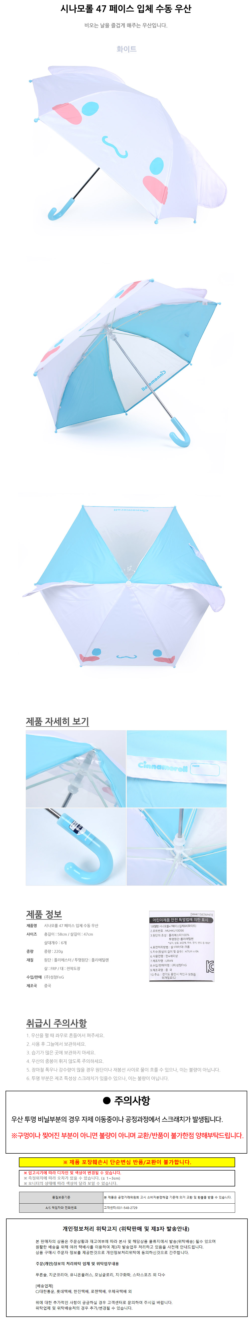 성창 시나모롤 페이스 입체 수동 47 우산