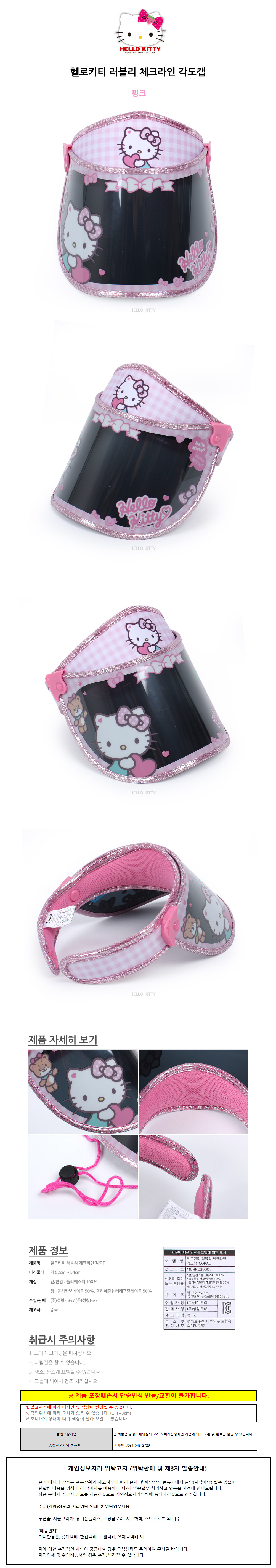 성창 헬로키티 러블리 체크 라인 각도캡