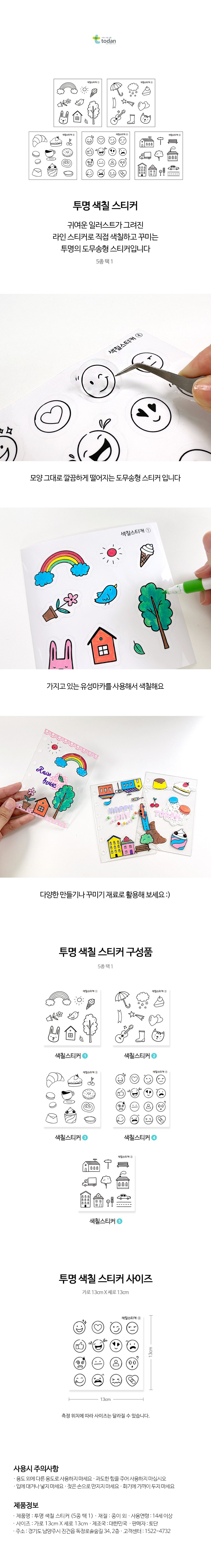 (TD) (꾸미기 재료) 투명 색칠 스티커 (5종 택 1)
