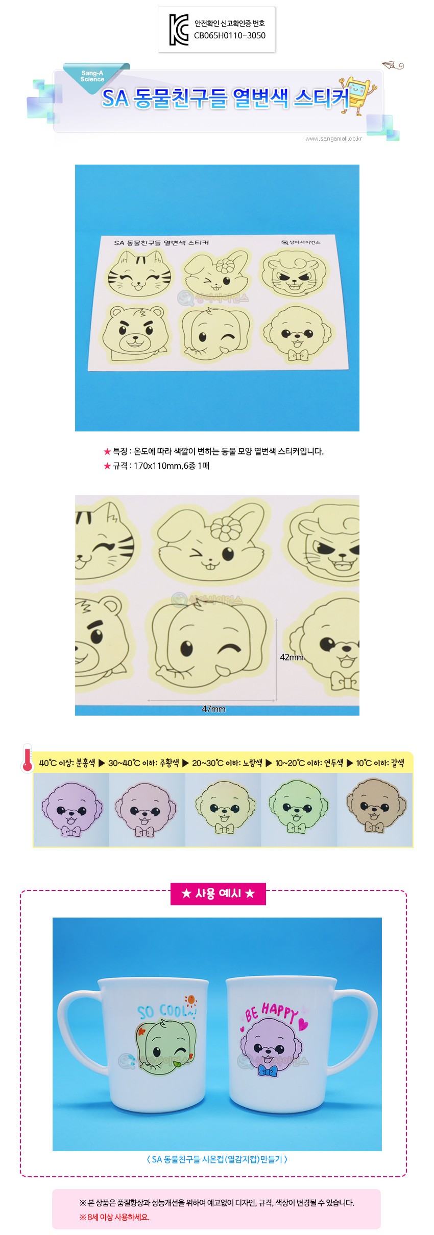• 모델명(SA) SA 동물친구들 열변색 스티...