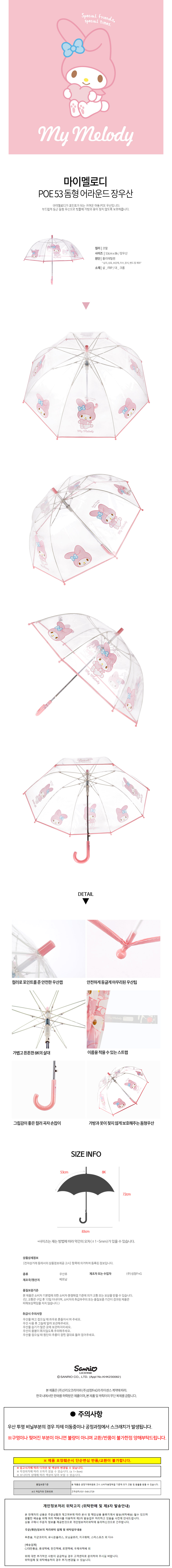성창 마이멜로디 돔형 어라운드 POE 53 장우산
