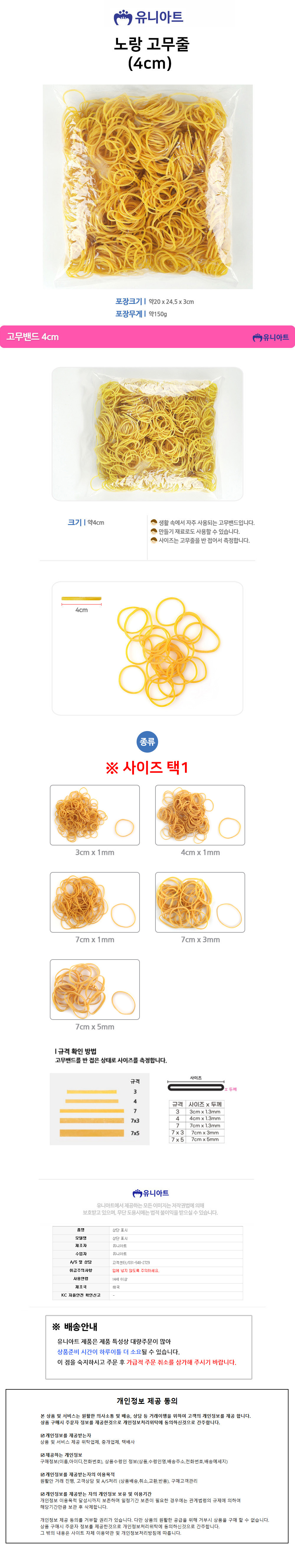 유니아트 (고무밴드) 5000 노랑 고무줄 (4cm)
