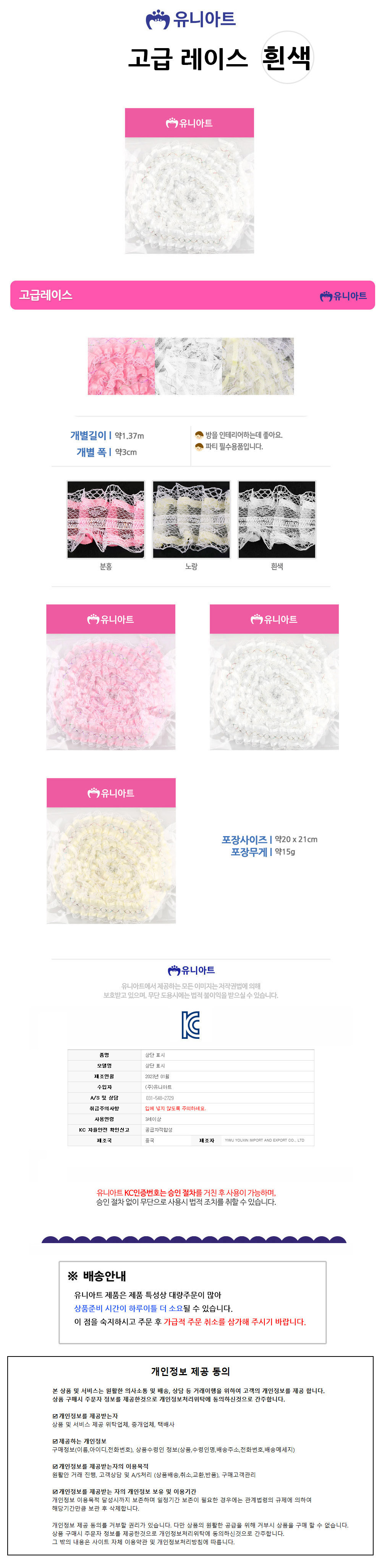 유니아트 (레이스) 고급레이스 (폭3cm) (흰색)