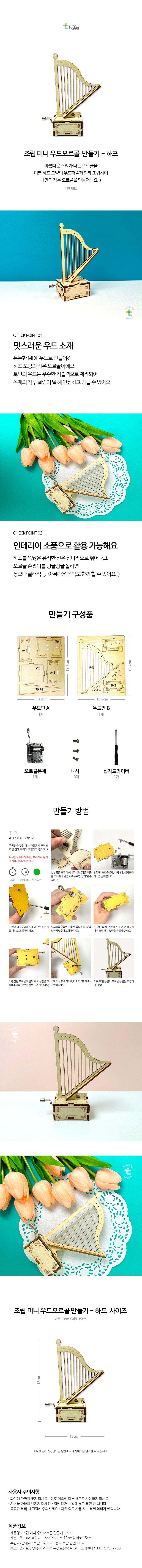 (TD) (취미키트) 조립 미니 우드오르골 만들기 - 하프