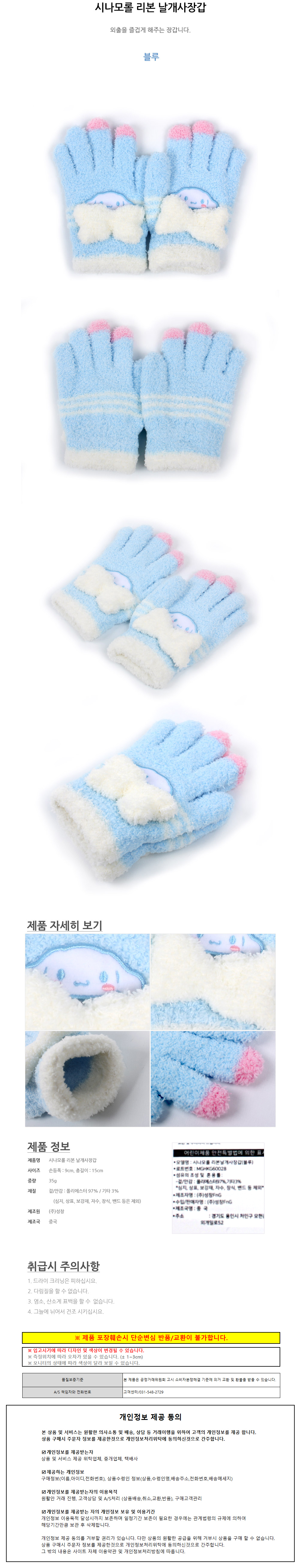 성창FNG 시나모롤 리본 날개사장갑