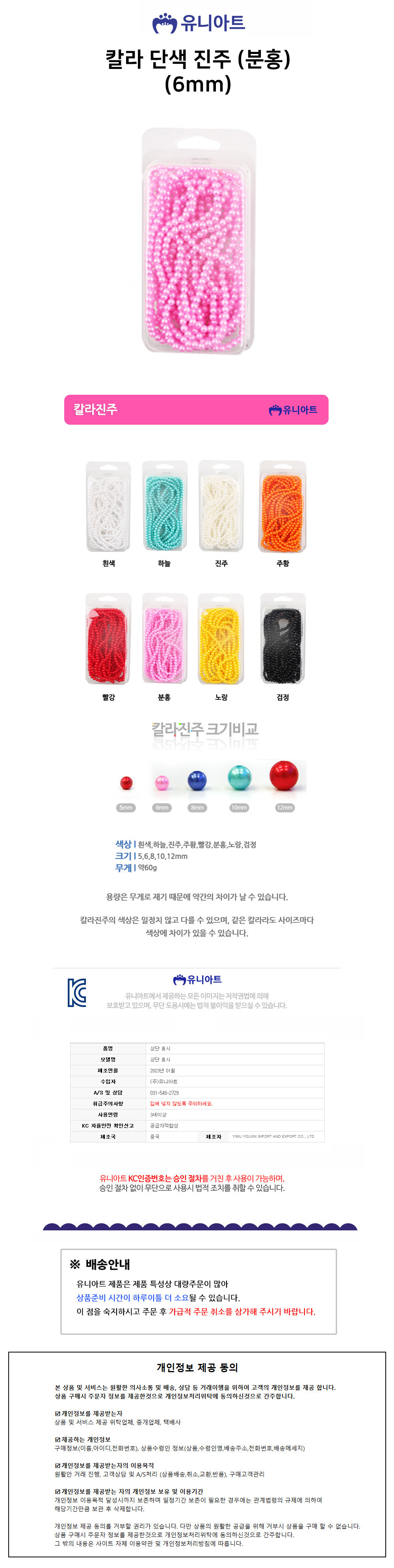 유니아트 (진주) 3000 칼라 구슬 단색 진주 (분홍) (6mm)