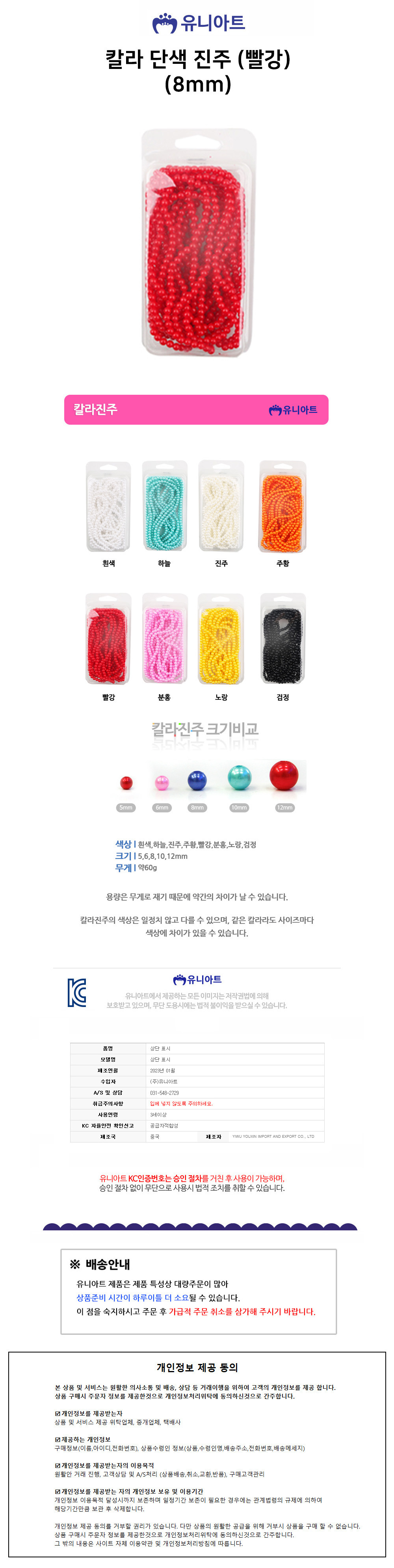 유니아트 (진주) 3000 칼라 구슬 단색 진주 (빨강) (8mm)