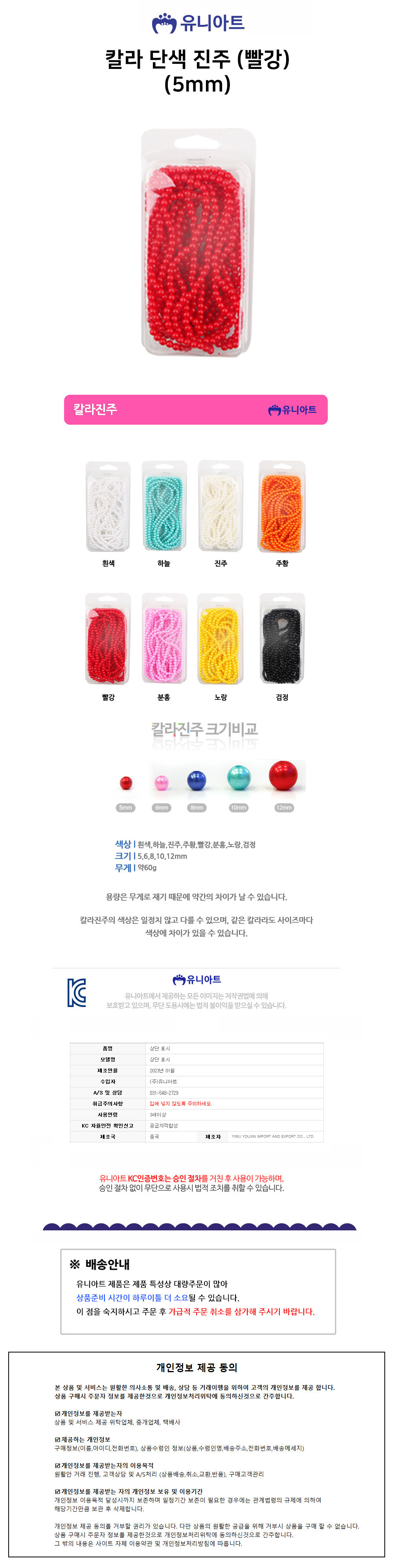 유니아트 (진주) 3000 칼라 구슬 단색 진주 (빨강) (5mm)