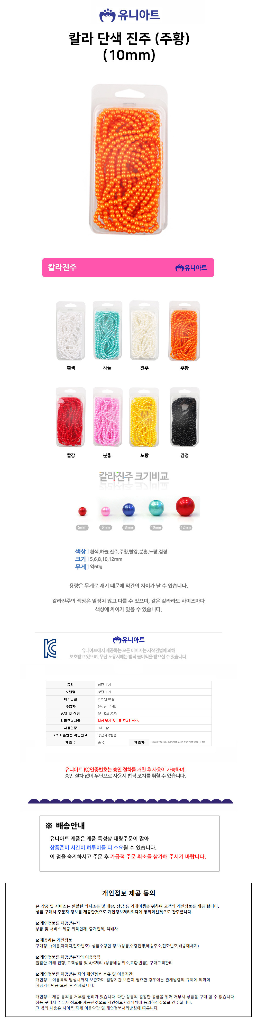 유니아트 (진주) 3000 칼라 구슬 단색 진주 (주황) (10mm)