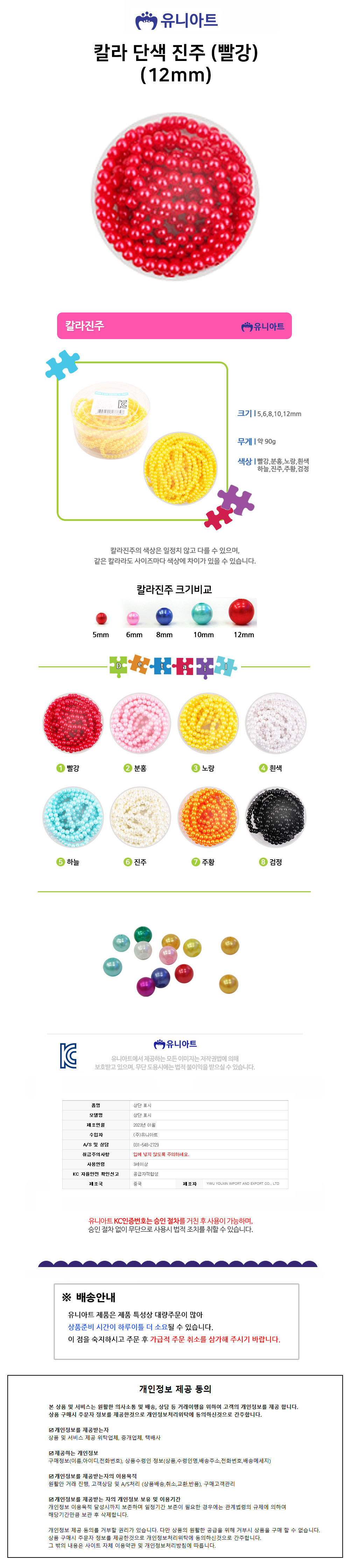 유니아트 (진주) 5000 칼라 구슬 단색 진주 (빨강) (12mm)