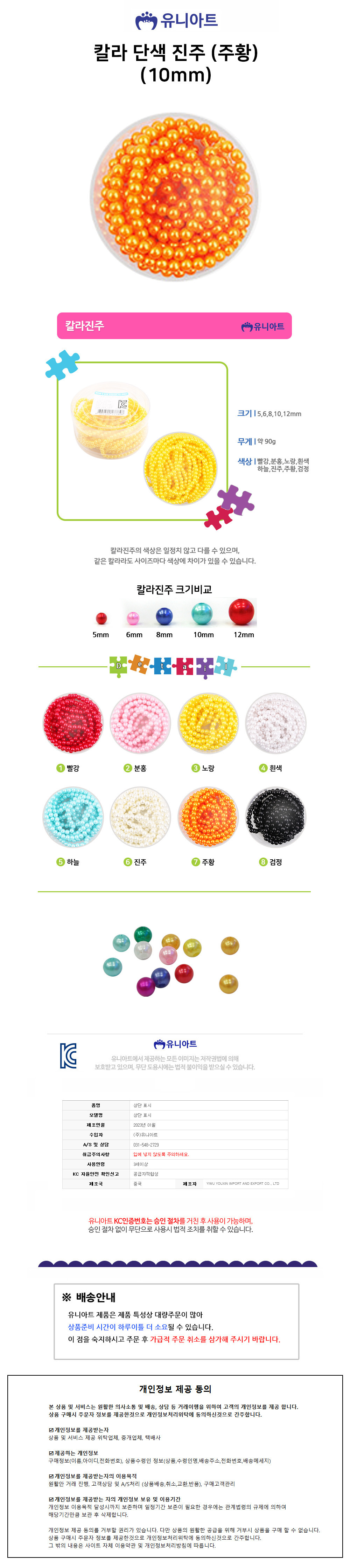 유니아트 (진주) 5000 칼라 구슬 단색 진주 (주황) (10mm)