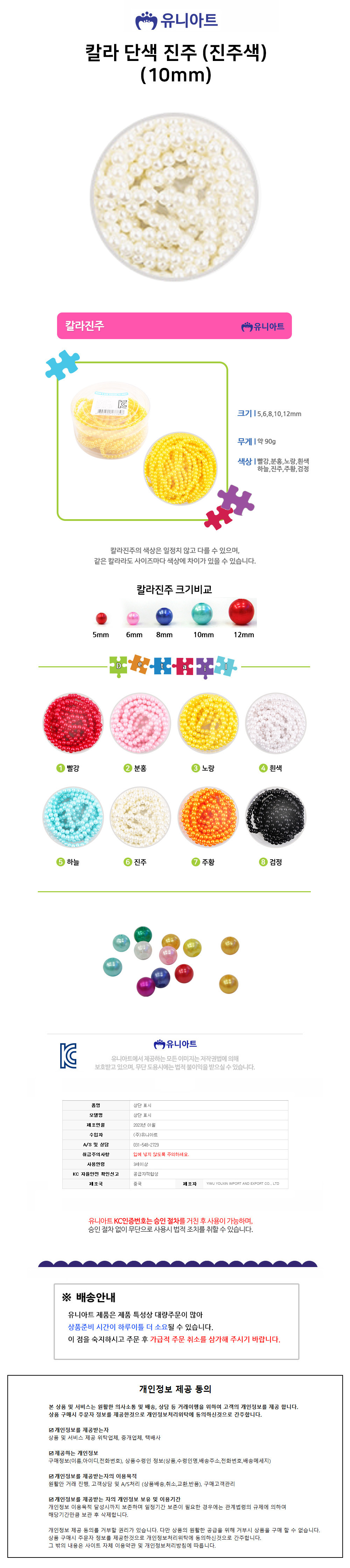 유니아트 (진주) 5000 칼라 구슬 단색 진주 (진주색) (10mm)