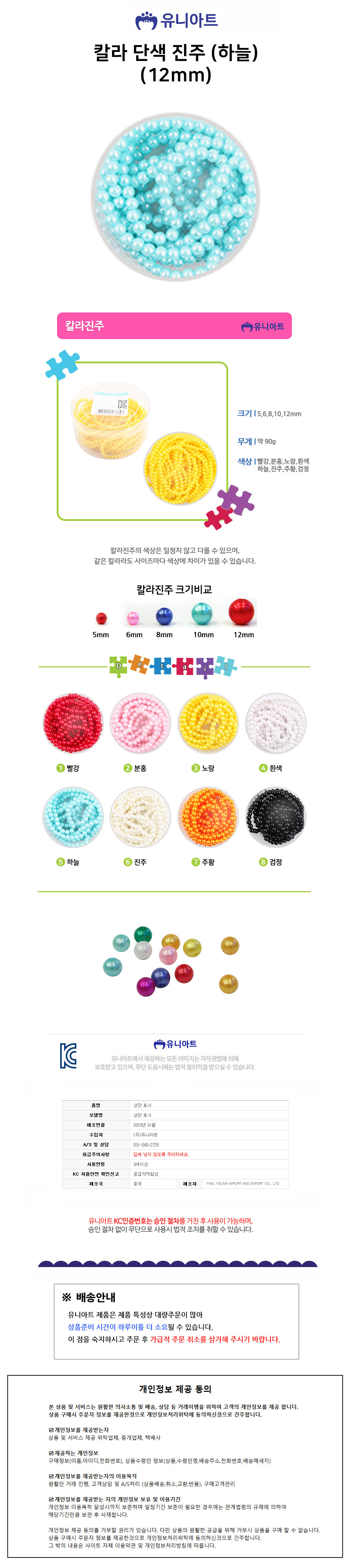 유니아트 (진주) 5000 칼라 구슬 단색 진주 (하늘) (12mm)
