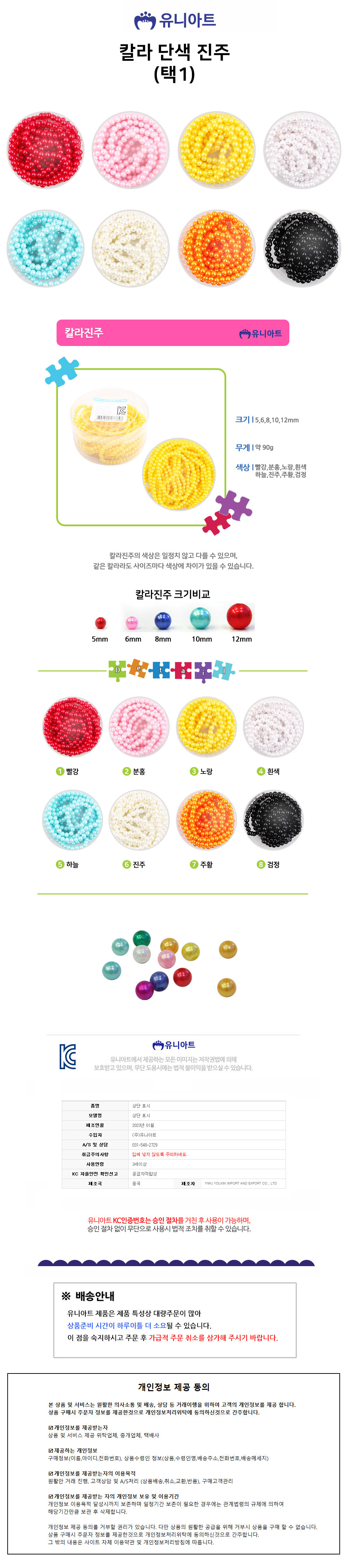 유니아트 (진주) 5000 칼라 구슬 단색 진주 (택1)