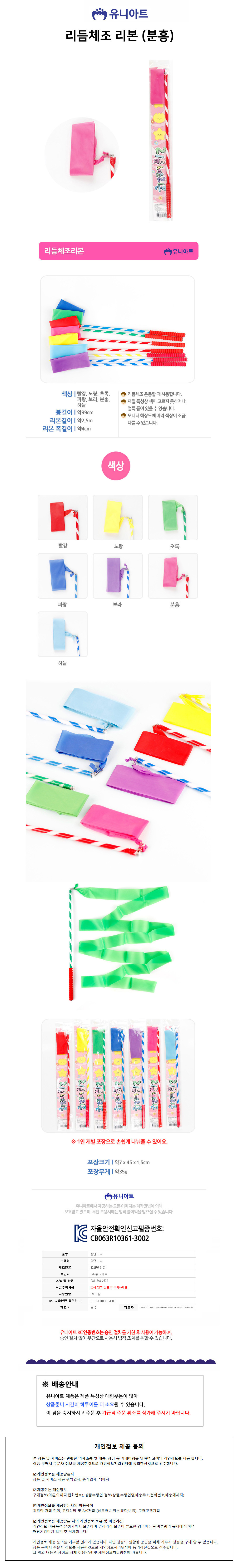 유니아트 리듬체조 리본 체조리본 (분홍) 리듬체조리본