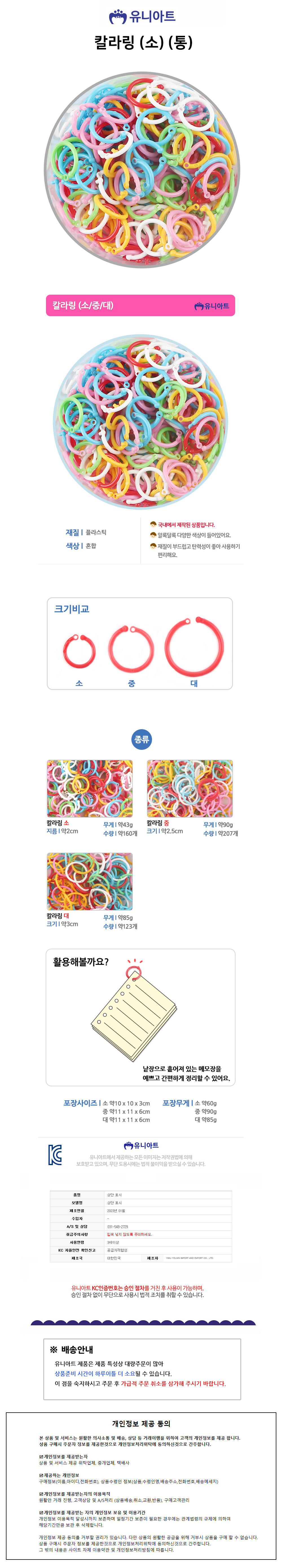 유니아트 칼라링 (소) (통)